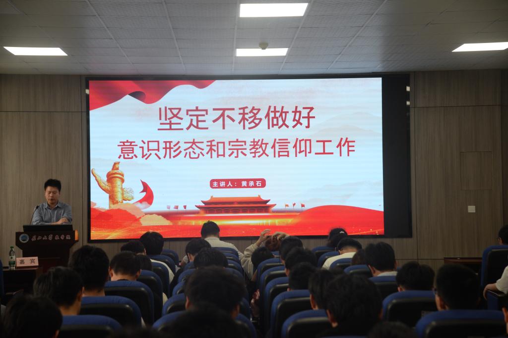 接着,学工办主任黄承石坚决表态:坚定不移做好意识形态和宗教信仰工作。对于宗教信仰问题,各寝室长要及时关注,及时沟通。他强调正确的意识形态有助于学生成长,有利于国家长治久安。
