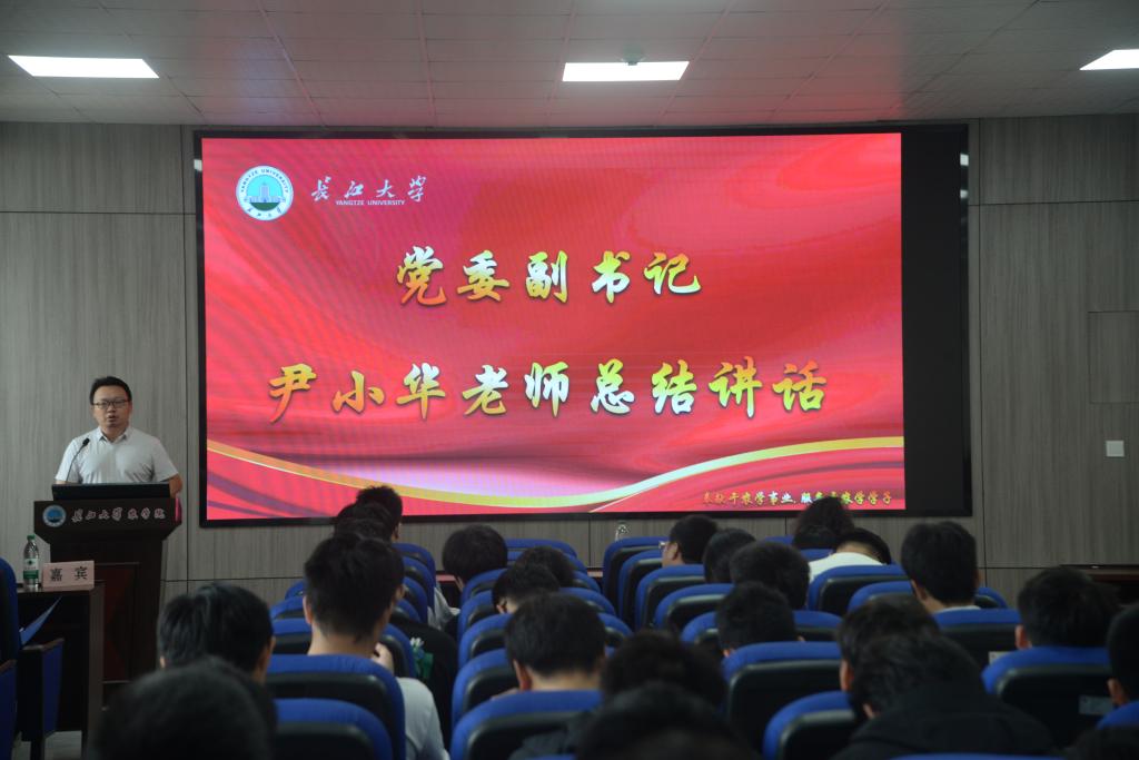 党委副书记尹小华总结讲话,他表明优秀的寝室离不开良好的宿舍卫生和深厚的舍友情谊,寝室长要起带头作用。