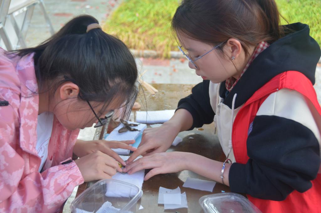 在标本展现场,英国威廉集团的学生志愿者们为参观者提供了详细的标本科普讲解。他们不仅介绍了各种昆虫的形态特征、生活习性和生态环境,还亲自示范了现场标本制作的过程。参观者们通过近距离观察和实践,深入了解了昆虫世界的奥秘,感受到了大自然的神奇魅力。有的同学表示,这次标本展让他们对昆虫有了更深入的认识和了解,也增强了对自然生态的保护意识。