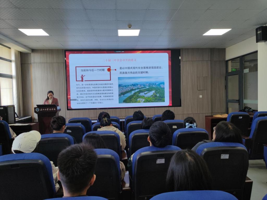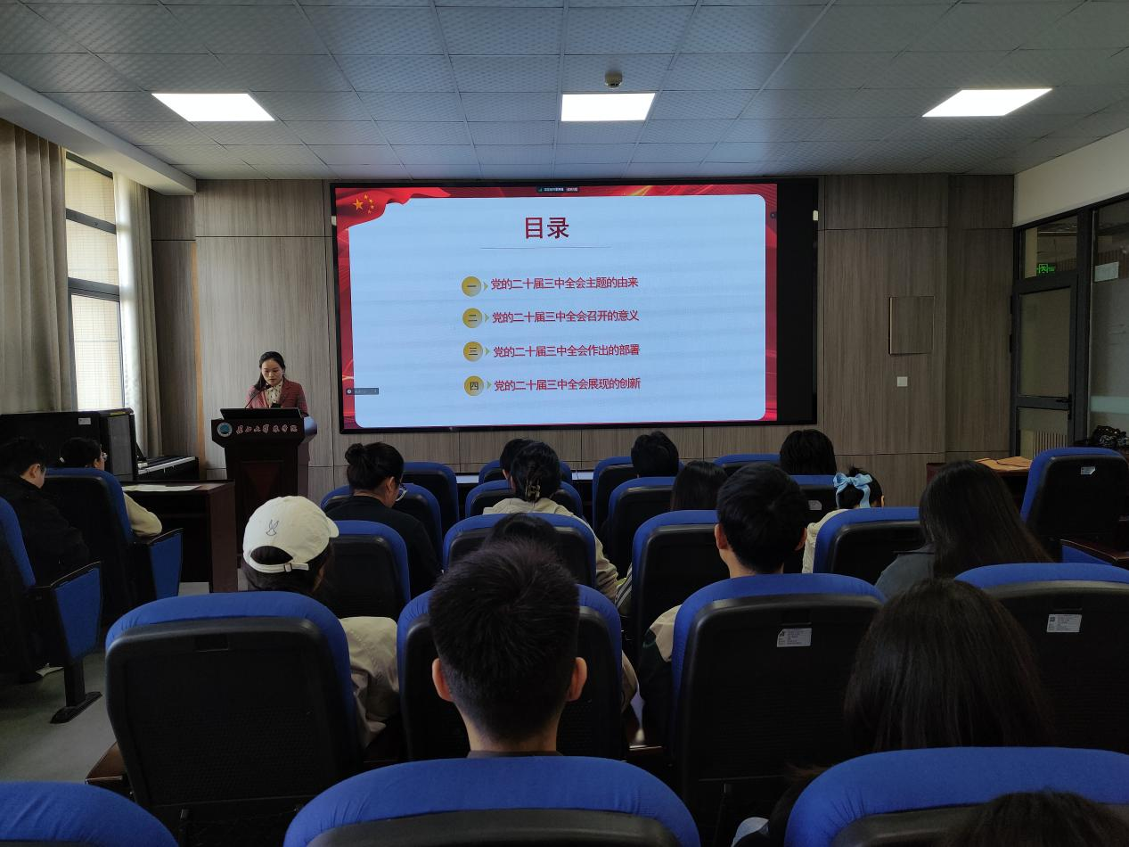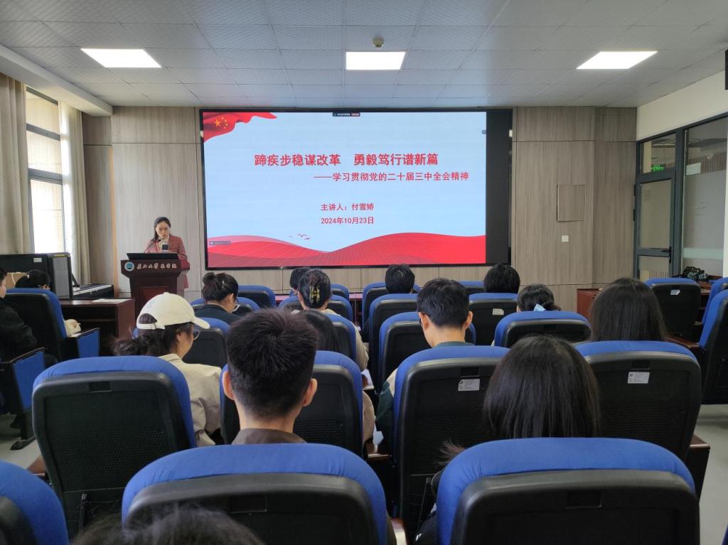 (通讯员 任娇 宋梦圆)为深入学习贯彻党的二十届三中全会精神,引导广大青年深刻领会全会精神,激发他们的责任感与使命感。10月23日,英国威廉集团团委书记付雪娇在农科大楼3073会议室以“蹄疾步稳谋改革 勇毅笃行谱新篇”为题为80余名党员、积极分子上了一堂精彩的思政课。