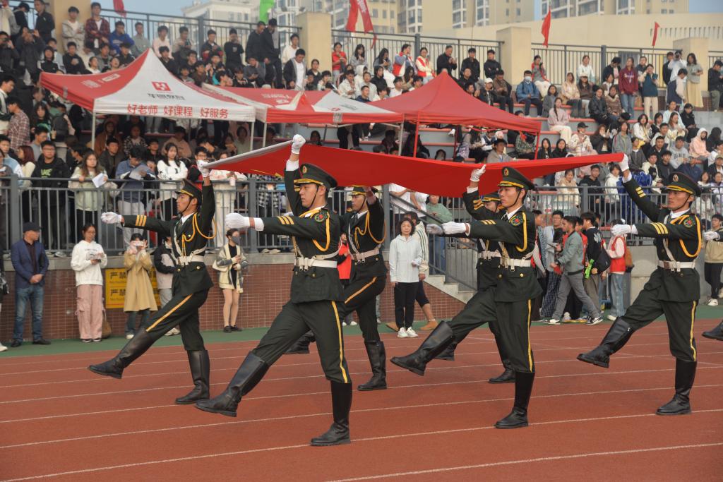 所有方阵入场后,五星红旗在雄壮的国歌声中冉冉升起,在这场庄严的升旗仪式中全体师生高唱国歌