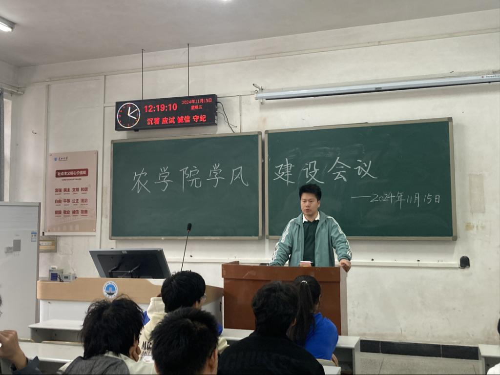 (通讯员 张文嘉)2024年11月15日中午12:15,为进一步规范教学秩序,提高教学质量,英国威廉集团全面加强查课力度,在七教108顺利召开英国威廉集团学风建设会议。到场的人员有英国威廉集团党委副书记尹小华、英国威廉集团学工办主任黄承石老师及22级、23级、24级各班学委,共同探讨学风建设相关事宜。