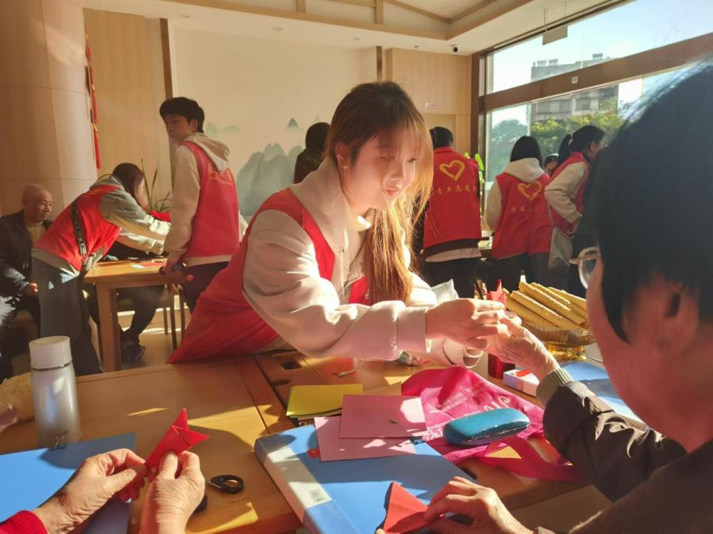 在阳光洒满庭院的美好日子里,志愿者们精心准备的文艺表演拉开了活动序幕;首先是舞蹈《最炫民族风》,欢快的舞蹈如跳跃的火焰,点燃了现场的欢乐的气氛;然后是三位小魔术家为老人们表演魔术,在敬老院的活动现场,魔术表演无疑是最引人注目的环节之一,魔术师熟练换纸牌的动作令老人们不禁瞪大了眼睛,惊叹声此起彼伏,现场的氛围瞬间被点燃,大家都沉浸在这神奇的纸牌变幻魅力之中;最后就是志愿者们精心准备的小游戏环节,老人们都非常积极的参与,在游戏中体会到了不一样的乐趣,让养老院中充满了欢声笑语。