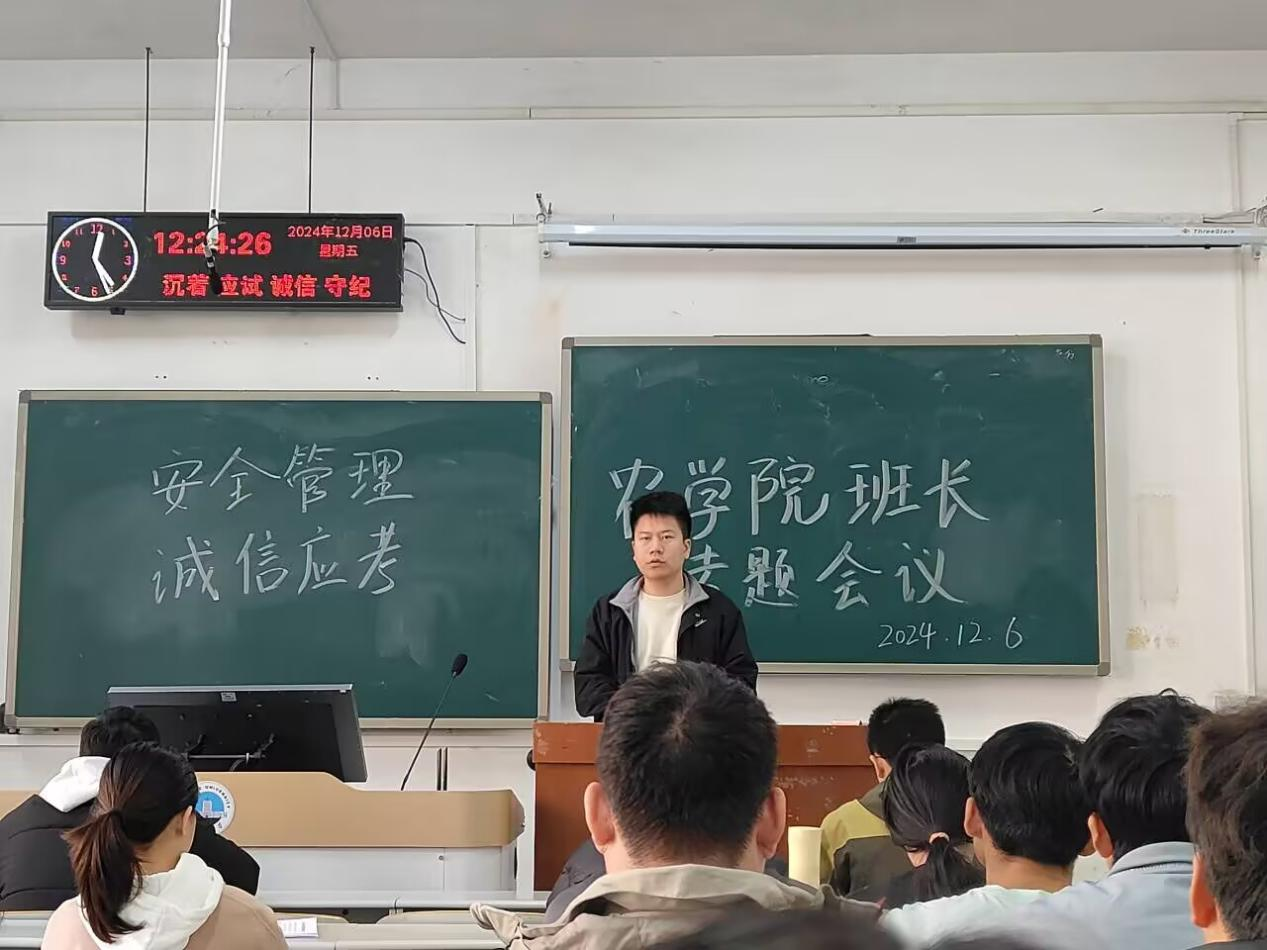 会议伊始,学工办主任黄承石老师强调了安全管理在学院工作中的首要地位,并要求班长们发挥“沟通桥梁”作用,及时上传下达安全信息,确保学生安全。随后对近期校园内外发生的安全事件进行了通报,分析了安全事故的原因,并提出了针对性的预防措施。会议还强调了宿舍安全、实验室安全、网络安全和个人财产安全等方面,要求各班长和安全委员在班级中积极开展安全教育,要求学生们务必树牢反诈意识,下载并注册反诈App,提示学生时刻注意防骗,“不转账,不上当”,谨防诈骗。此外,由于天气寒冷导致生病的学生较多,会议提醒学生们注意个人卫生,身体不适及时就医,学院将继续密切关注,心学生的身体健康。