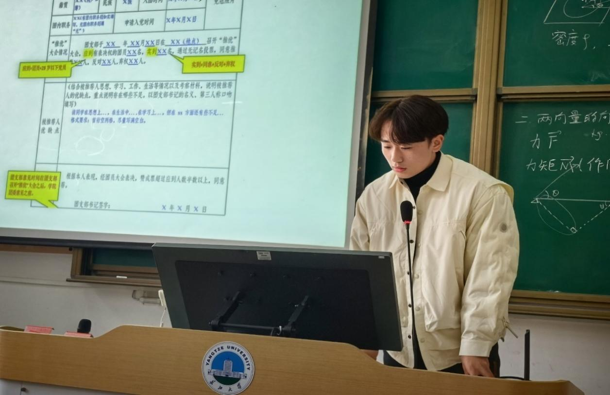 在付雪娇老师的讲解后,组织部部长蒋云霖为参会人员补充讲解了共青团威廉williamhill委员会推荐入党积极分子申请表的填写注意事项。他强调,申请表要如实填写,重点突出个人事迹,切忌夸大其词。同时,申请人还需要提供相关证明材料,如获奖证书、社会实践证明等,以佐证自己的先进事迹。