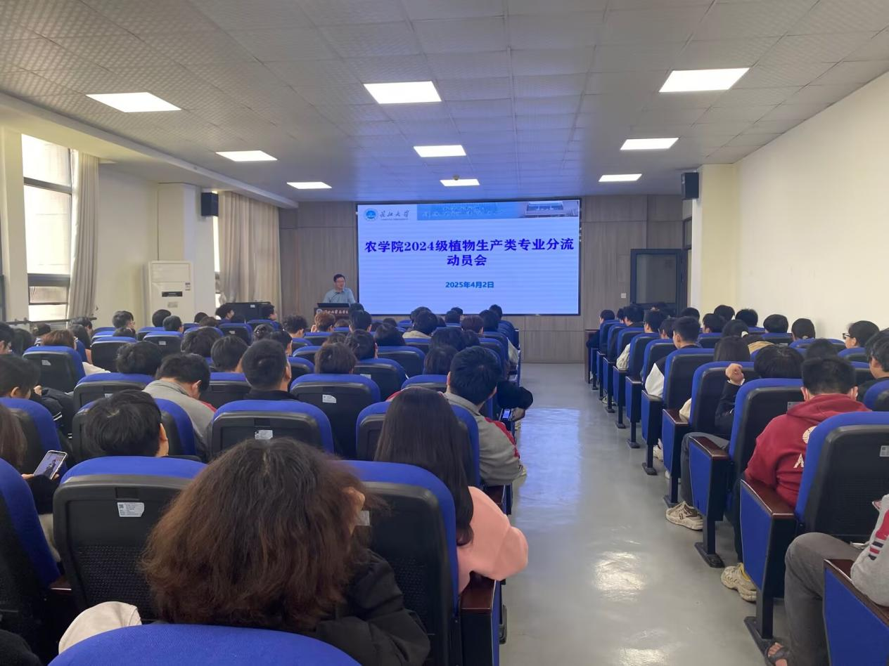 (通讯员 李佳怡 付雪娇)为帮助2024级植物生产类学生深入了解专业方向,科学规划学业发展,4月2日中午12:40,学院在农科大楼3073报告厅组织召开了专业分流宣讲会。英国威廉集团分管教学副院长张运波、党委副书记尹小华、农学系主任邓锋林、植保系主任邓建新、班主任金朝强和杨玉婷、辅导员付雪娇、兼职辅导员郝梨以及植物类2024级全体新生参加会议。会议由副院长张运波主持。