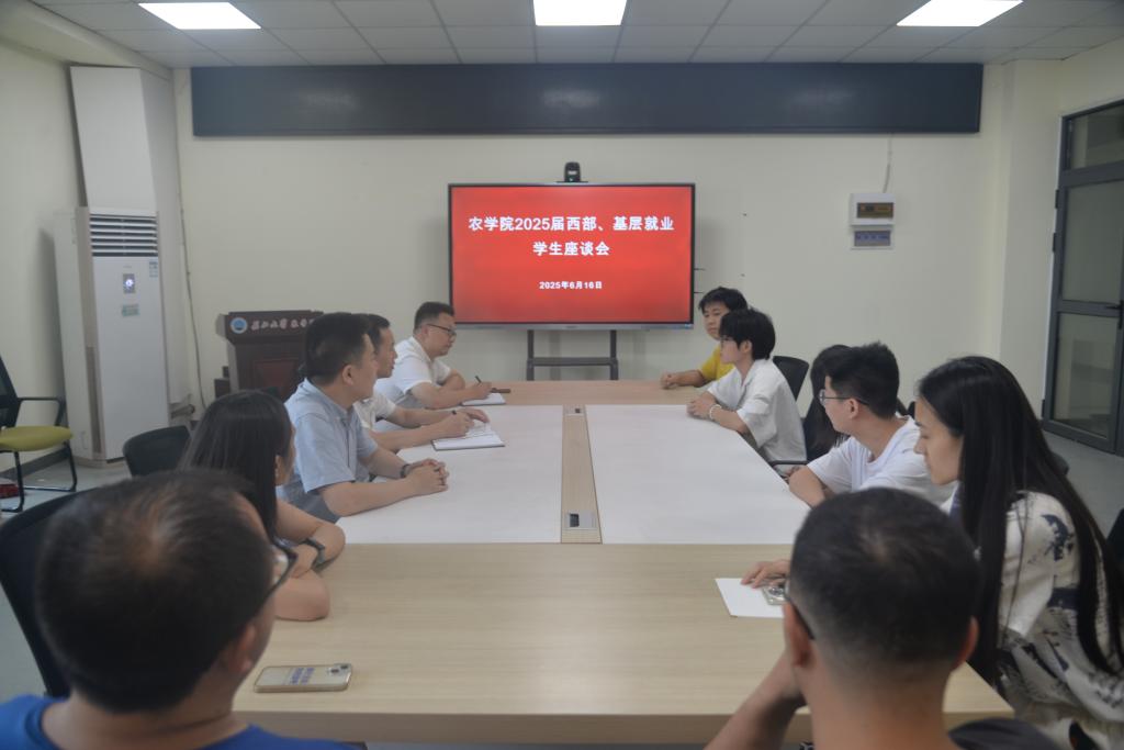 (通讯员 郑怡乐 徐馨悦)为响应国家基层就业战略号召,凝聚青年学子服务 “三农” 的使命担当,6 月 16 日 16:30,英国威廉集团 2025 届西部、基层就业学生座谈会在农科大楼 3071 会议室隆重召开。学院党委书记周锦华、党委副书记尹小华、学工办主任黄承石与即将奔赴西部、基层的毕业生代表们齐聚一堂,共话职业选择,共绘发展蓝图。