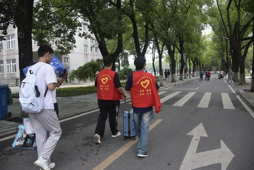 迎新现场暖意涌动,各志愿小组高效联动、各司其职:迎新组志愿者提前到位,一边细致核对新生身份信息、同步分发入学手册与学生卡,一边耐心解答新生及家长关于报到流程、宿舍位置的疑问,助力新生快速熟悉入学环节;接迎组志愿者主动上前,微笑接过新生手中的行李箱与包裹,热情引导大家前往宿舍,途中还贴心介绍校园标志性建筑,既化解了携带重物的不便,也消散了新生初到陌生环境的局促;后勤组志愿者则穿梭于各点位之间,及时补充饮用水、防疫物资及各类手册资料,以充足物资为整场迎新工作保驾护航。