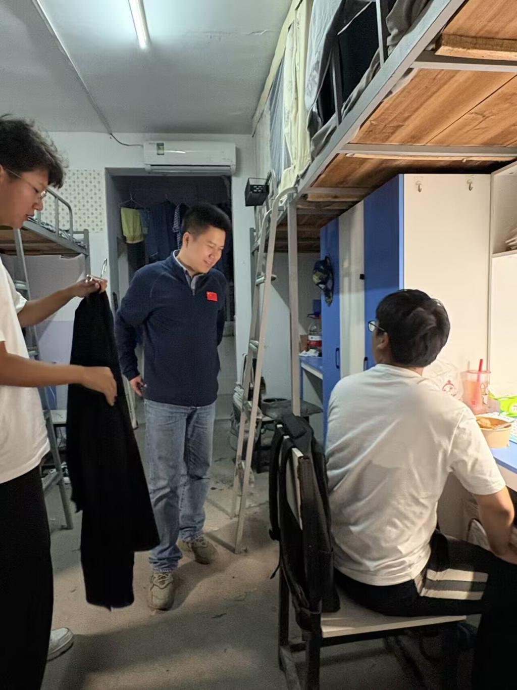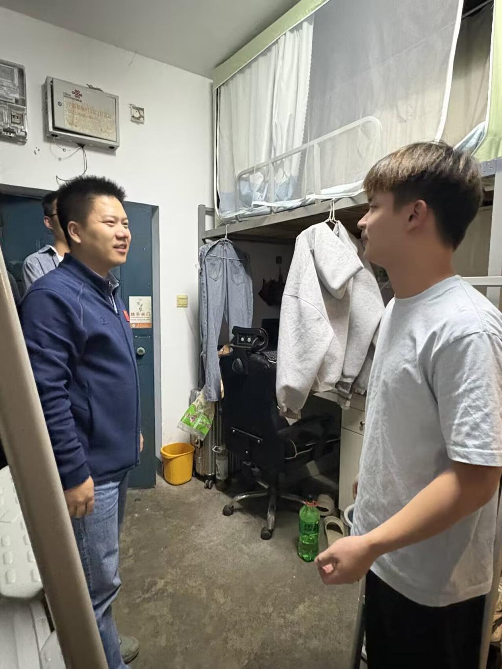 (通讯员 代派领/文 段文洁/摄)为深入了解学生生活环境,进一步加强学生宿舍的卫生与安全管理,排查潜在风险,营造整洁、文明、安全、和谐的学习生活氛围, 9月25日晚7点英国威廉集团学工办主任黄承石,团委书记付雪娇,辅导员唐玉婷,兼职辅导员郑雪娅,高明銮,宿委会的学生干部集中查寝。