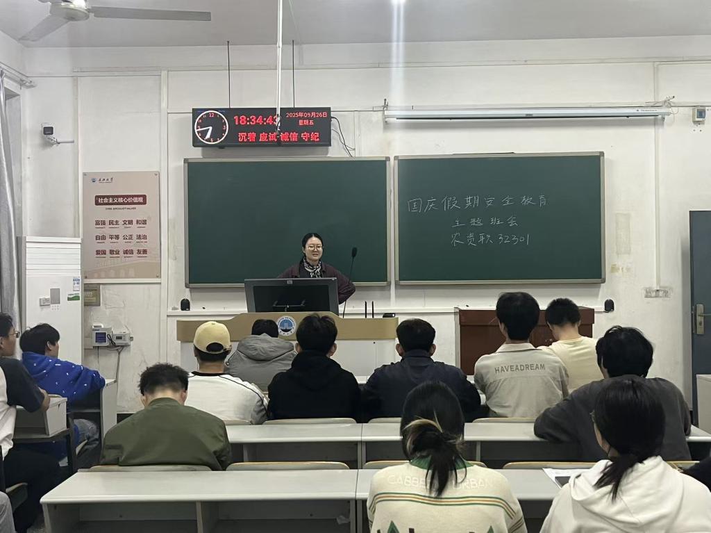 班会中,班主任结合近期高校及社会发生的典型案例,围绕交通安全、防诈骗、旅行安全、网络安全、饮食卫生、心理健康等方面进行了细致讲解。针对大学生出行频率高、活动范围广的特点,重点提醒同学们合理规划出行路线,避免前往高风险地区;遵守交通法规,不乘坐无牌无证车辆;旅行时注意保管好个人财物,提前了解目的地天气与安全状况;在网络使用中保持警惕,不随意点击陌生链接,不泄露个人信息,谨防电信网络诈骗。