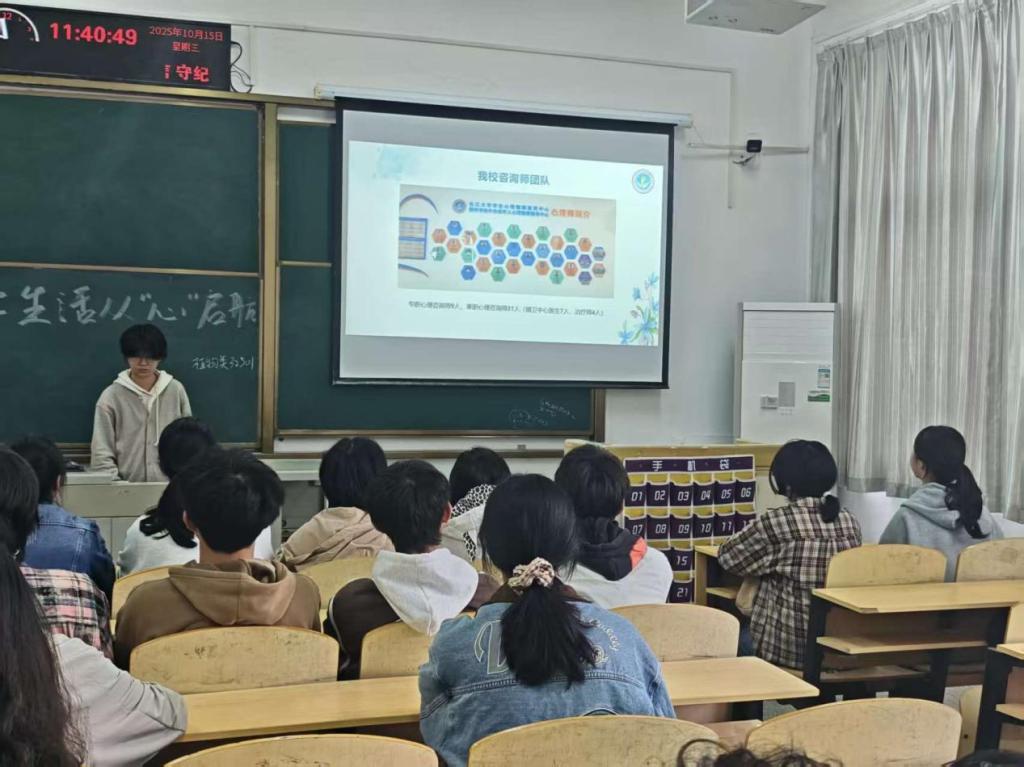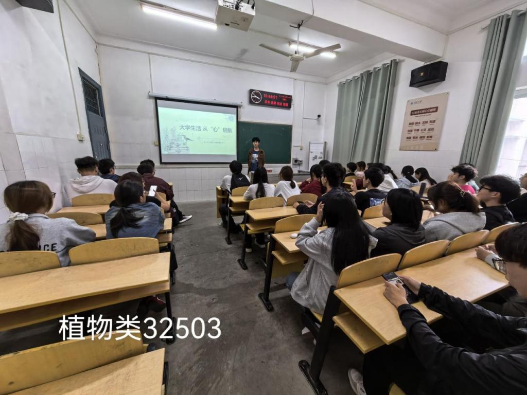 植物类32503班的心育委员黄玉鑫以“大学生活,从‘心’启航”为开篇,带领同学们认识保持身心健康的重要性,一起学习了大学生常见心理压力的识别方法。植物类32501班心育委员许欣悦详细介绍了学校的心理咨询中心,带领同学们了解了心理咨询中心的预约流程、服务时间及线上、线下咨询的渠道,让同学们消除了对心理咨询的顾虑。
