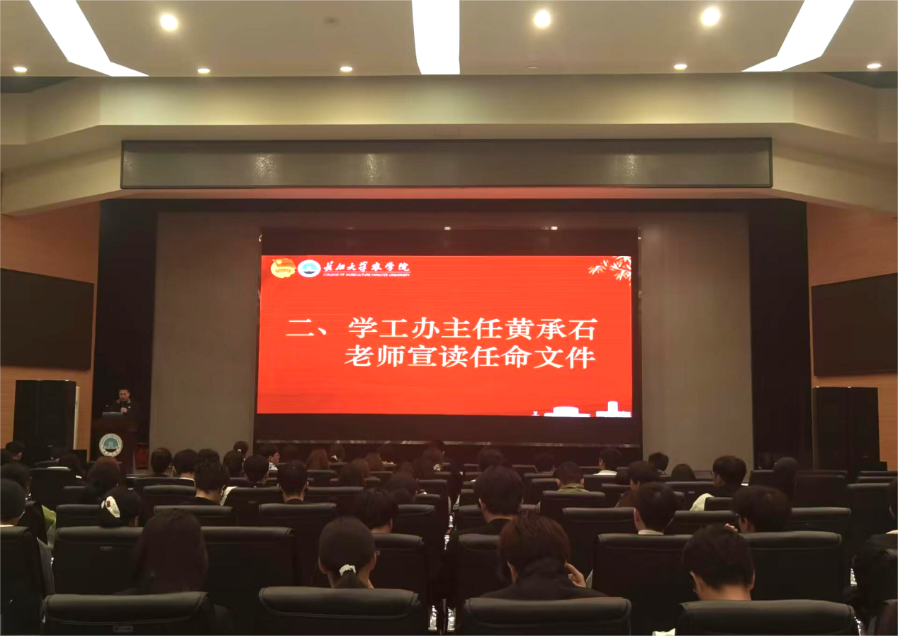 大会伊始,全体成员起立奏唱团歌,大会在激昂的旋律中拉开序幕。学工办主任黄承石宣读任命文件,明确了新一届团委学生会的组织架构与人员任命。随后,大会对第二十一届团委学生会主席团及部长(含宿委会)进行表彰,尹小华等老师为其颁发聘书,肯定他们过去的辛勤付出。