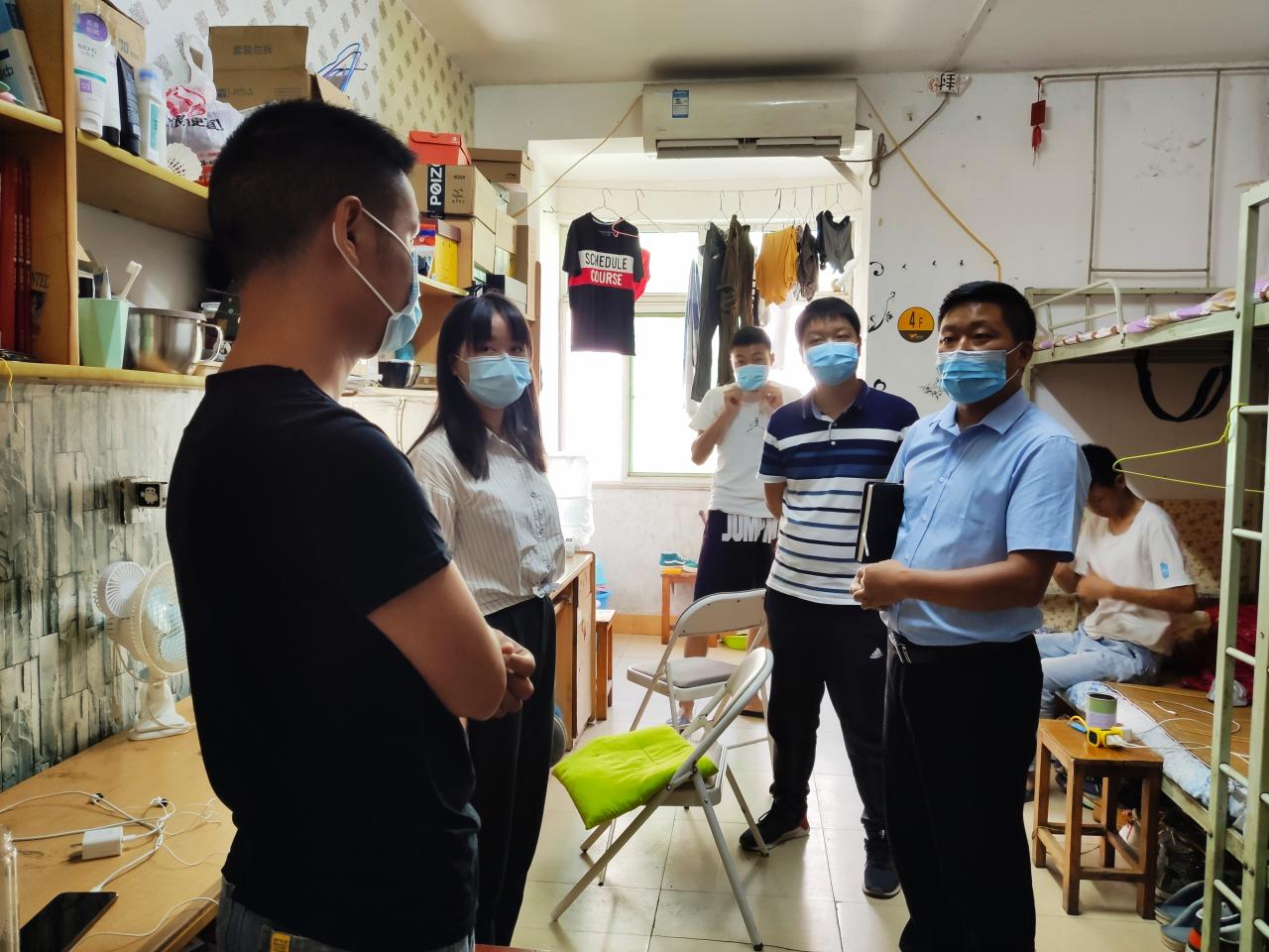 走访中,院领导对学生返校后的身体状况给予了亲切的问候和关心,督促学生,要求每人准备一支水银体温计,并教会学生如何正确使用体温计测体温,一旦发现体温异常,要第一时间向分管年级辅导员报告。另外,老师们针对学生返校后的住宿安全问题重点强调,提醒同学们“禁止在宿舍抽烟”、“禁止使用大功率电器”、“禁止乱接电线”等等。老师们特别叮嘱同学们要保证寝室及个人的清洁卫生,疫情还未结束,人人都要警惕,保障自己的健康,共同营造一个健康安全舒适的宿舍环境。