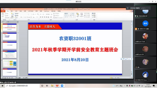 为进一步落实学校《关于做好2021年秋季学期开学准备工作的通知》要求,确保秋季学期开学工作平稳有序,根据学校疫情防控工作的要求,8月18日-22日,我院由年级辅导员牵头,班主任具体组织,各班利用腾讯会议、QQ群、微信群等形式,组织学生召开2021年秋季学期开学前安全教育主题班会。