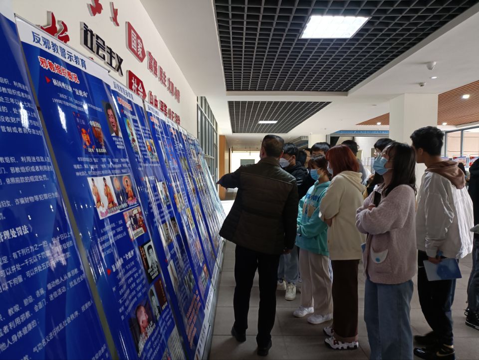 此次活动开展的方式分为线上和线下:线上召集全体同学观看视频《新闻联播》2021年12月4日播报:习近平总书记在全国宗教工作会议上的讲话精神;CCTV《护航之道——总体国家安全观纵横》。以此来了解在不同方面的国家安全,引导同学们树立起“总体国家安全观”的核心价值,进一步增强维护国家安全的责任感和使命感。线下组织各班班长以及安全委员在农科大楼保卫处观看反邪教教育宣传展板,旨在让同学们进一步了解邪教、邪教的特征以及行骗手段等,从而使其提高识别、抵御、拒绝和有效防范邪教的能力,防止受到不良影响。