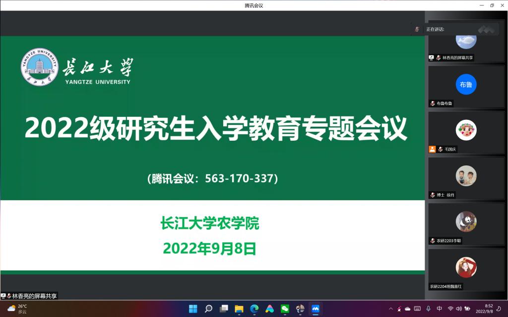 (通讯员 李秋红)为加强研究生新生思想政治教育,巩固当前疫情防控工作落实,帮助新生熟悉了解院史院情,9月8日上午,英国威廉集团召开2022级研究生入学教育专题会议。英国威廉集团党委副书记尹小华、兼职辅导员毛国庆、研究生会主席团成员参加,研究生辅导员林香亮主持会议。
