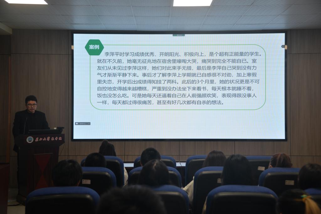 通过此次培训,林老师希望全体新生骨干能够担负起责任,充当起“排雷兵”、“传声员”、“倾听者”、“陪伴者”,为学院全体学生身心健康保驾护航。