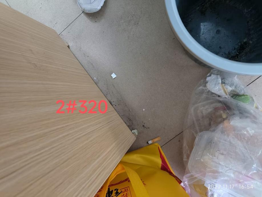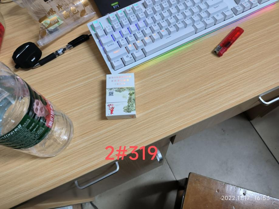 2022年11月17日,杨云锋、付雪娇等老师带领宿委会、学生会成员检查了风华园学生宿舍的安全状况。现通报如下:风华园2栋112宿舍、2栋305宿舍、2栋309宿舍、2栋320宿舍、2栋407宿舍存在使用违章电器或私拉电线的现象;风华园2栋120宿舍、2栋305宿舍、2栋319宿舍、2栋320宿舍、2栋411宿舍存在抽烟现象(见附图)。