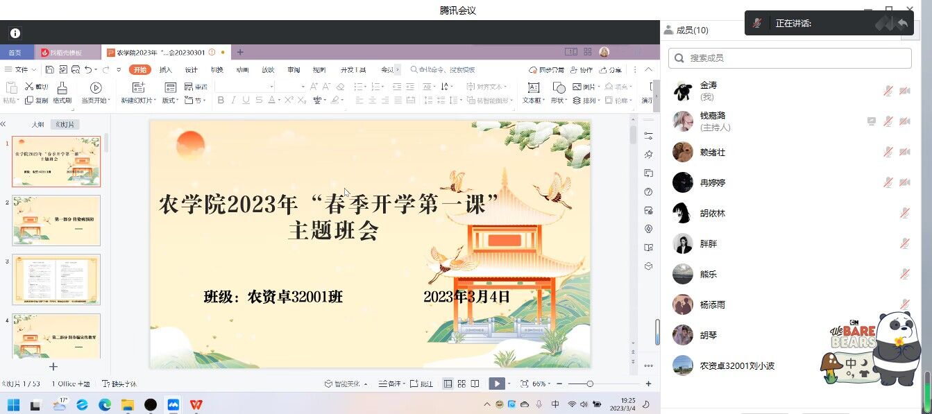 最后,老师带领学生回顾这场刚吹响胜利号角的疫情战争,突出展示了大学生在疫情当中体现出来的青春与担当,正确认识这场疫情背后所体现出来的伟大抗疫精神,呼吁学生们树立正确的人生观价值观,寻找属于自己的舞台,展示属于自己的青春,接续“长江后浪推前浪”的劲,挑起时代赋予的重担。