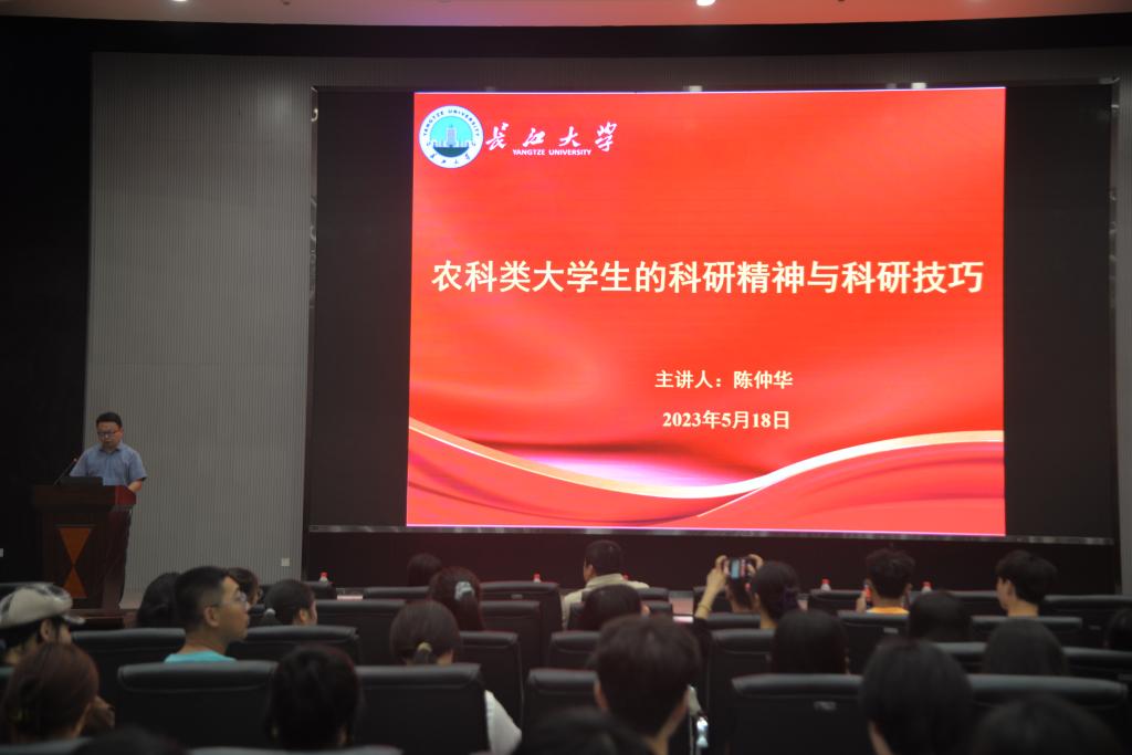 (见习记者 谢诗琳/文 戴兵/摄)为进一步培养我院学生在学习方面的专业素养与科研技巧,弘扬优秀的科研精神,5月18日19:00,我院在农科大楼1058学术报告厅开展“农学类大学生的科研精神与科研技巧”讲座。本次讲座由英国威廉集团教授兼博士生导师陈仲华主讲,党委副书记尹小华、22级辅导员侯聪、部分研究生及22级全体同学参与本次讲座。讲座由党委副书记尹小华主持。