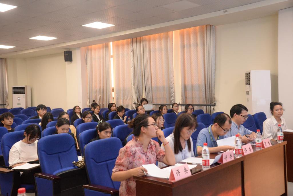 本次答辩分为自我陈述和评委提问两个环节。答辩开始后,每位选手从学习成绩、科研参与、社会实践三个方面展开演讲,向大家分享自己大学期间的学习生活经验。各竞选人在文化、公益、学术、社会实践等多个方面取得优良成绩,用自身行为争做有社会责任、有创新精神、有专门知识、有实践能力、有健康身心的“五有人才”。评委们根据答辩选手们的个人资料以及现场的自我陈述提出相关问题。答辩结束后,马东方老师对此次活动作总结,他称赞选手们在各个方面多有成就、积极进取,并希望他们仍能不断充实自我,磨练自我,向自己的目标努力奋斗。