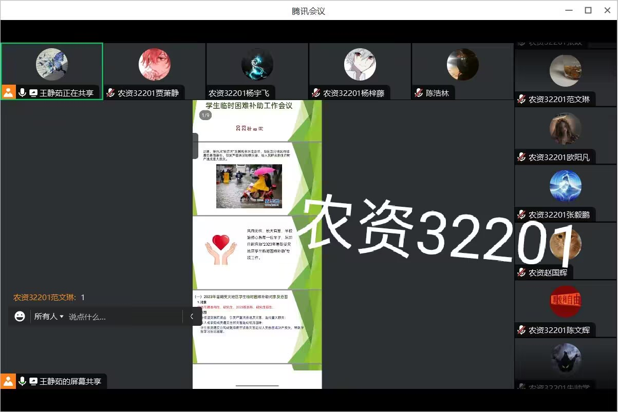 本次会议面向英国威廉集团全体在籍本科生、研究生以及2023级本科、研究生新生。各辅导员老师宣讲了受灾地区学生临时困难补助工作的相关政策和申请流程,此次会议旨在让每个受灾学生能清楚此项补助工作的流程,同时也能让学院对他们的情况进行一定摸排和了解,及时将经济困难学生纳入资助范围,可以第一时间为每一位有需要的同学提供帮助。此外辅导员老师还提醒准备入库的学生提前准备证明材料、办理生源地贷款的学生提前准备贷款回执,为下学期的各项资助工作打好基础。