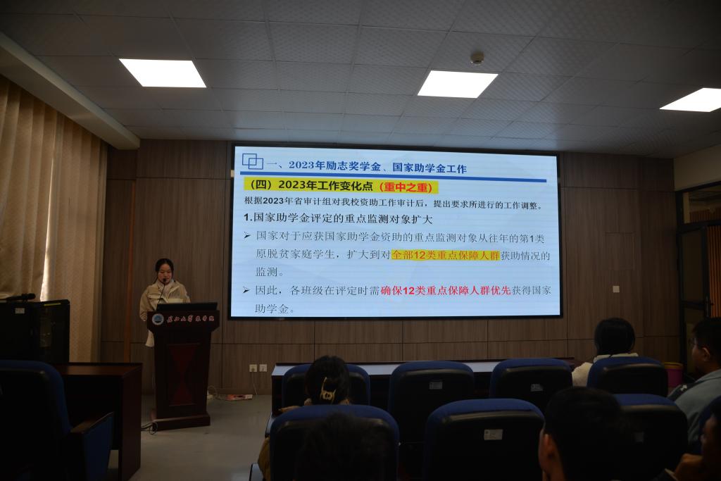 (见习记者 杨梦瑶/文 王研/摄)为进一步做好我院关于国家励志奖学金和国家助学金的评选工作,我院于11月12日中午12点20分在农科大楼3073会议室举行关于国家励志奖学金和国家助学金初评工作班委培训会议,会议由辅导员付雪娇主讲,全体2020级至2023级各班班长和生活委员参加。