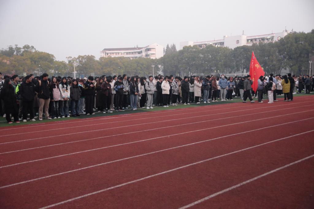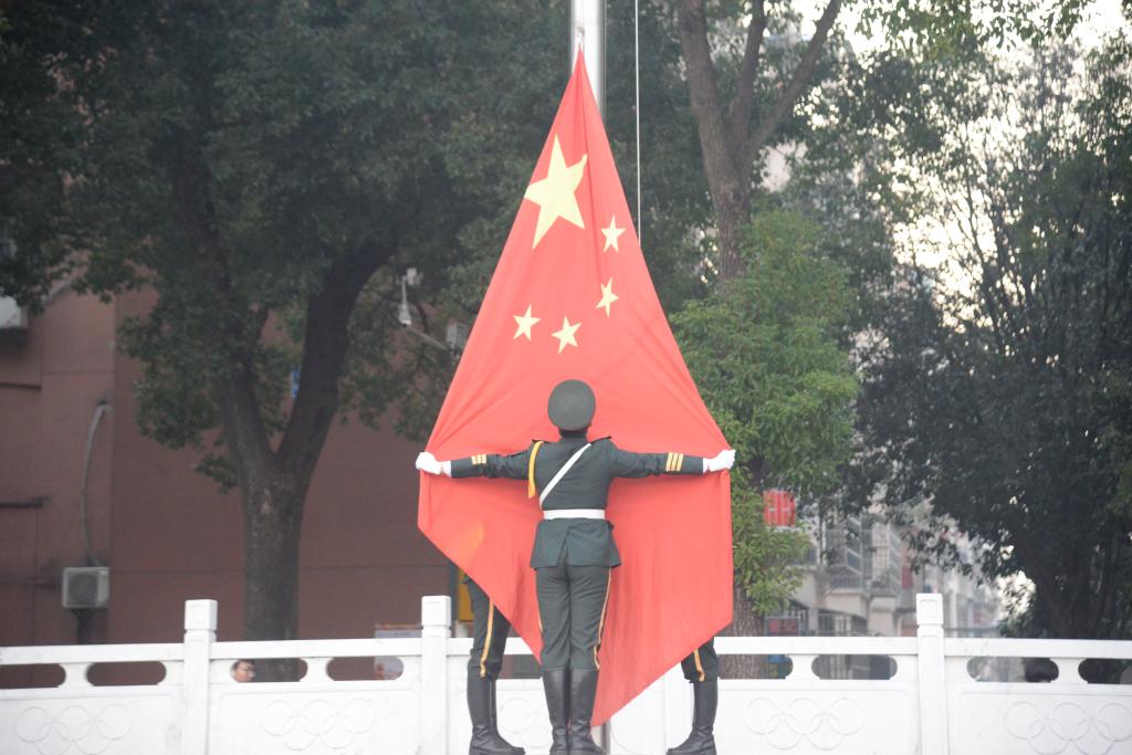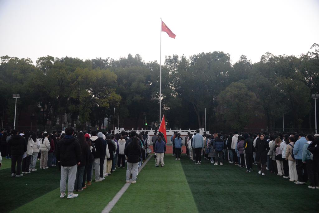 (见习记者 赵雨洁/文 向建华/摄)寒风送暑去,落叶知冬意。11月20日7:00,我院在西校区田径场开展升旗仪式。学院党委副书记尹小华、辅导员付雪娇、林香亮、唐玉婷和英国威廉集团全体在校本科生、研究生参与此次活动。