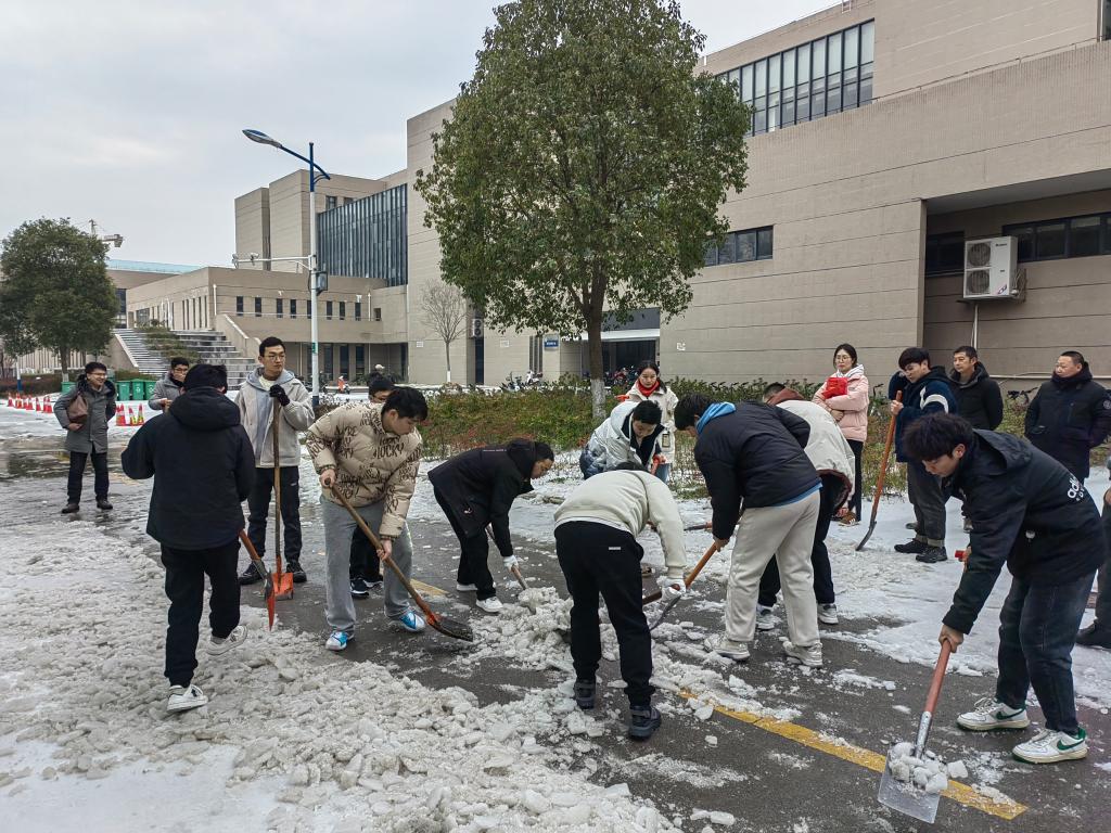 (见习记者 曹淏郁/文)近日,受寒潮影响,荆州市出现持续性冻雨降雪天气,路面结冰,道路湿滑,给即将复工复学的学校师生们带来许多不便。为保障开学后师生出行安全、方便,英国威廉集团积极响应学校号召,于2月24日上午组建铲雪除冰小分队,由院党委副书记尹小华任队长,全体辅导员及十余名学生干部参与。