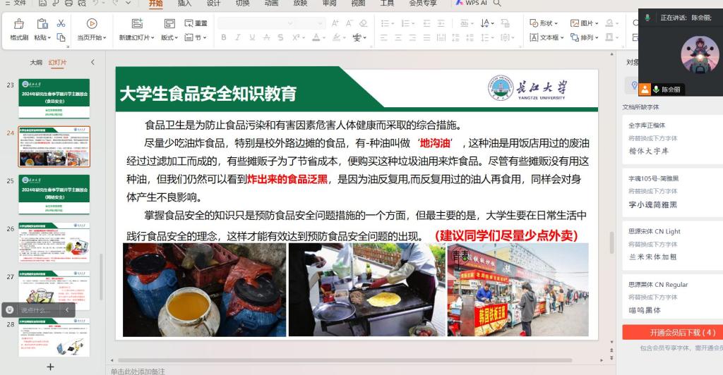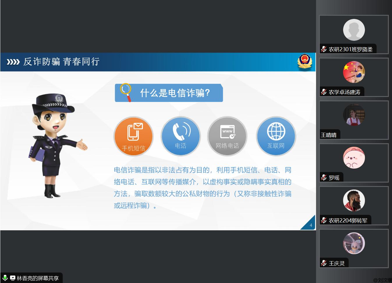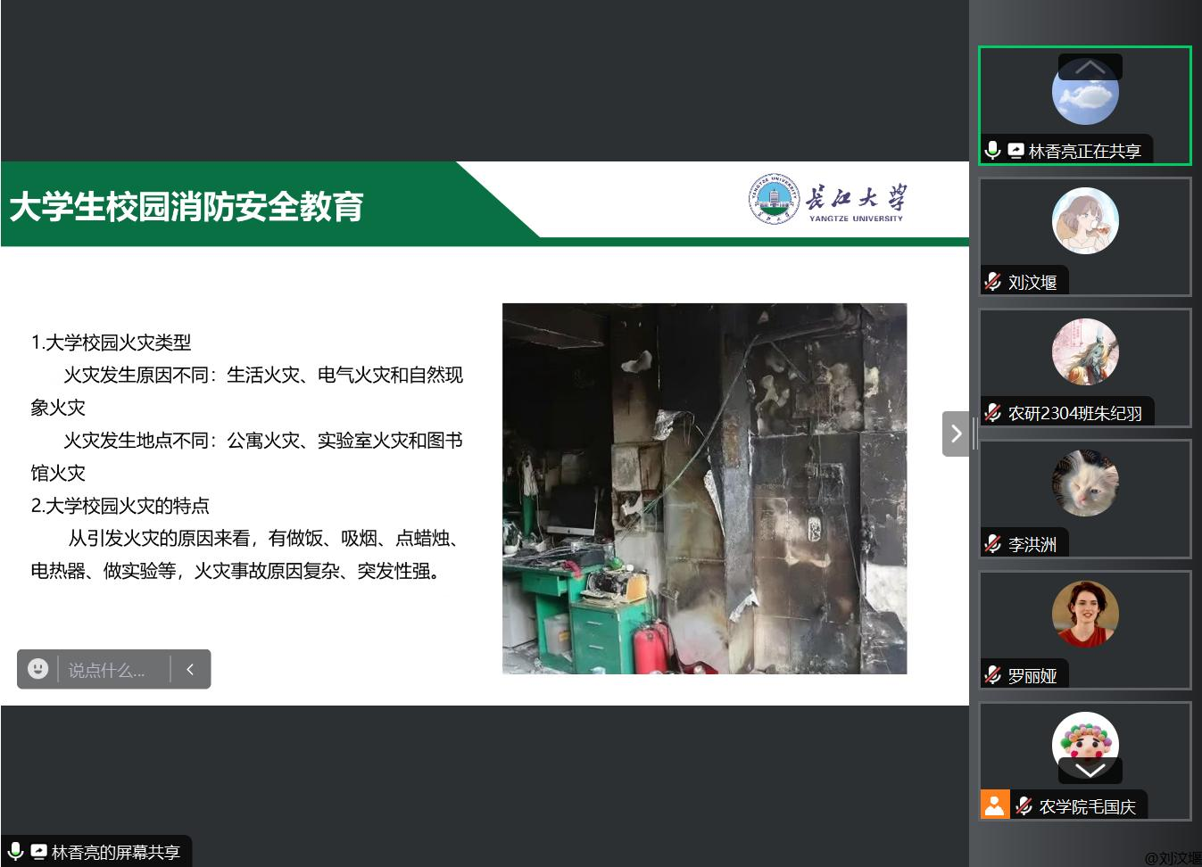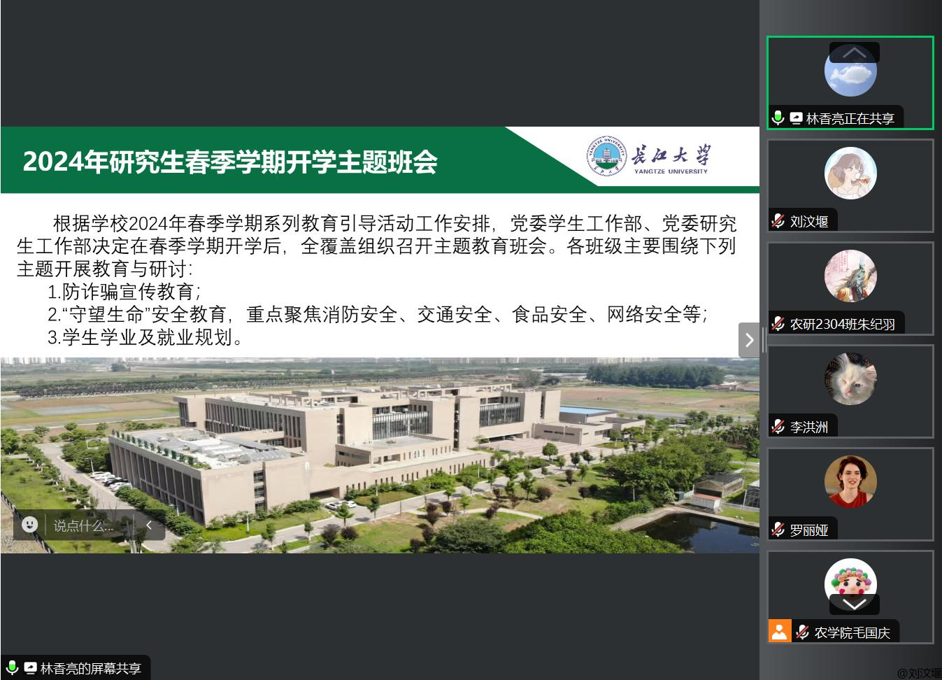 研究生辅导员林香亮强调,新学期各班级要摸清底数,全面掌握研究生的返校情况以及联培研究生的具体人数,全面谋划安全教育工作。开学初,各班级要系统推进防诈骗、生命教育、消防安全、网络安全、交通安全、食品安全等常态化安全教育,学院将会通过学生干部会议、班会、下宿舍、进实验室等多种形式系统开展安全教育。