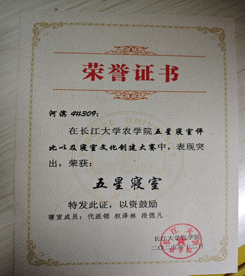 一间寝室,一份温暖;三年同行,一生情谊。河滨公寓4#309寝室,以和谐凝聚力量,以自律塑造环境,以奋斗成就成长,是名副其实的优秀寝室、文明寝室、五星寝室。未来,他们将继续携手同行,不忘初心、砥砺前行,在成长道路上不断进步,绽放更亮的青春光彩。