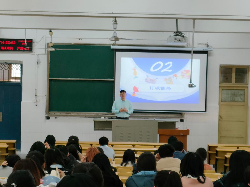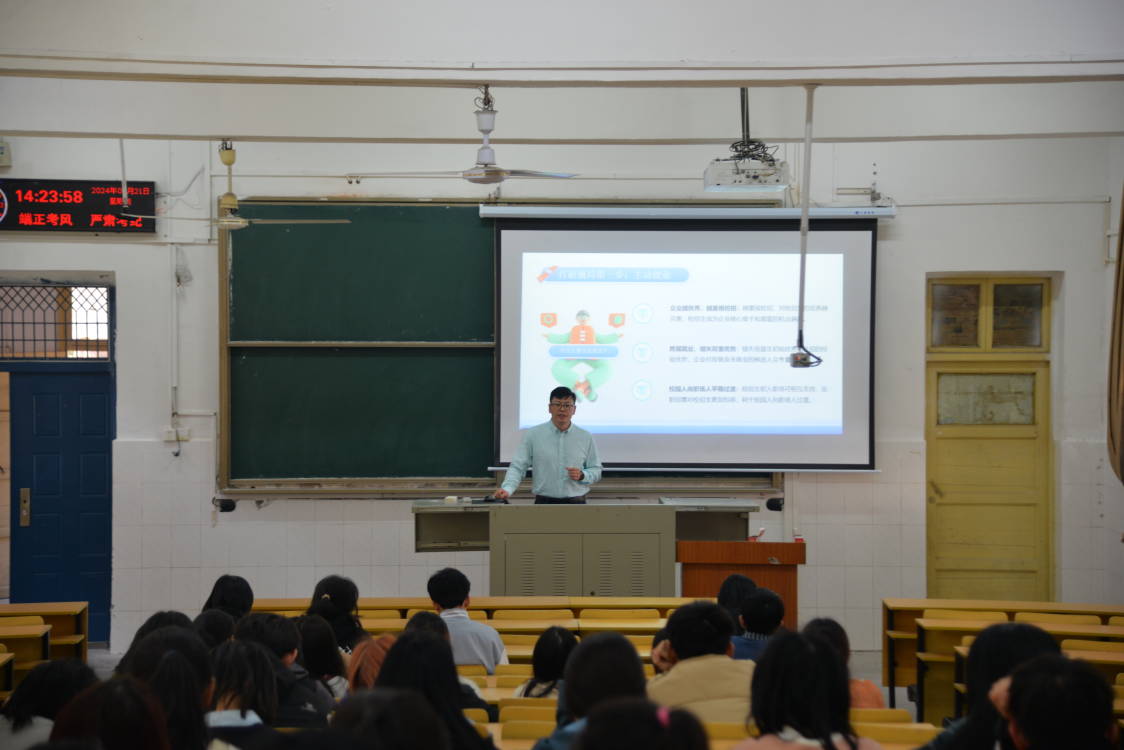 (见习记者 曹淏郁/文 邬道瑾/摄)为了帮助同学们了解所学专业及其发展前景,并为我院学生的职业规划提供不可或缺的指导,英国威廉集团于3月21日下午2时在二号教学楼T1室举办了本科生就业指导报告讲座。此次讲座邀请了广东中迅农科股份有限公司HR中心总经理丁瑞国为主讲,兼职辅导员李洪洲、部分本科生参会。