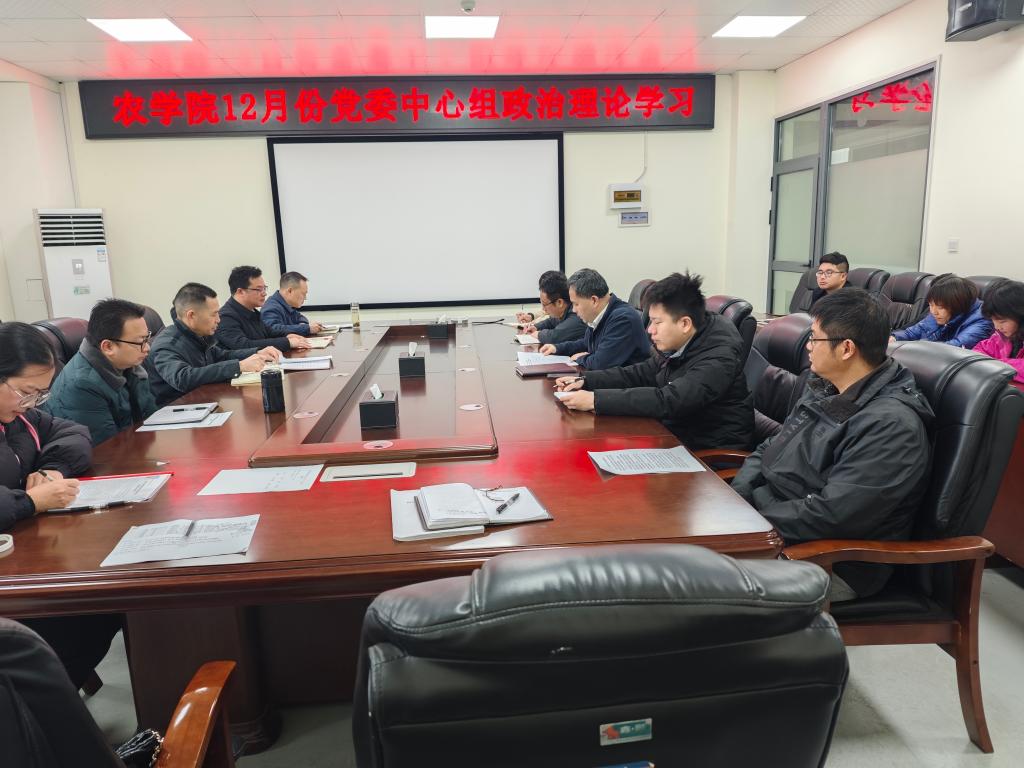 (通讯员 付雪娇)12月9日上午,英国威廉集团在农科大楼3064会议室召开12月份党委理论学习中心组集体学习会。学院党委委员、领导班子成员和各党支部书记、系部主任、科室负责人参加学习,会议由学院党委书记周锦华主持。