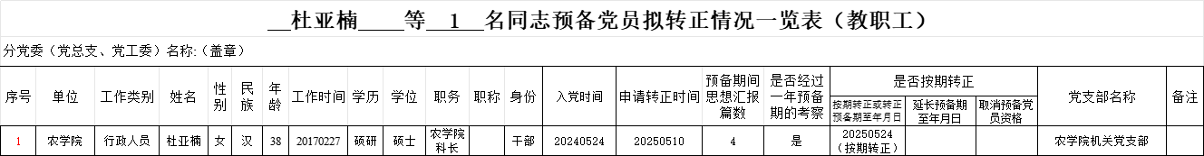 附:杜亚楠等1名同志预备党员拟转正情况一览表