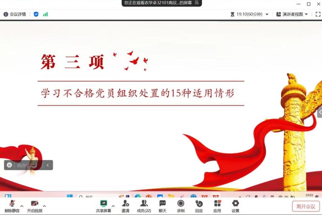 (通讯员 李雅倩)9月13日19:00,我院本科生党支部在腾讯会议895-187-995开展九月份支部主题党日活动,支部全体党员参会。活动由支部副书记高欣怡同志主持。