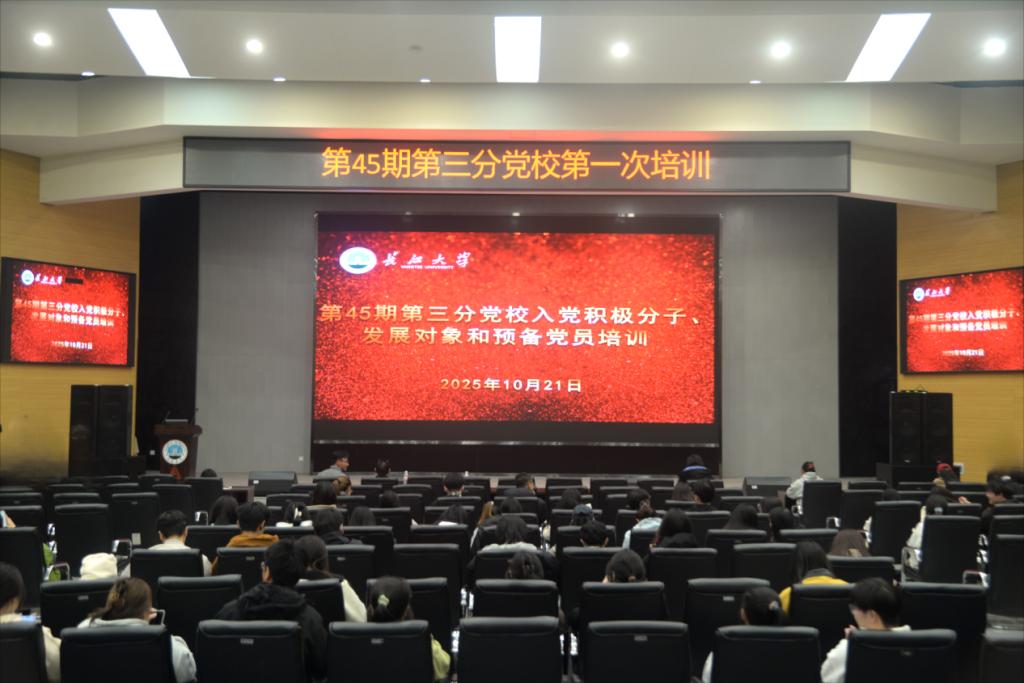 (通讯员 郑怡乐 王思雨/文 严树彬 方学斌 王浩源/摄)“学党章明方向,强信念向组织”。为深化青年学员对党的理论认知,筑牢 “跟党走、为人民” 的理想信念根基,英国威廉集团于10月21日晚 7点在农科大楼1058报告厅开展第45期第三分党校第一次培训。本次培训由英国威廉集团党委书记周锦华主讲,辅导员唐玉婷主持,生命科学学院辅导员李敏和第三分党校入党积极分子、发展对象及预备党员共同参与。