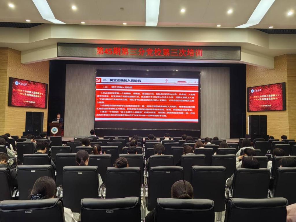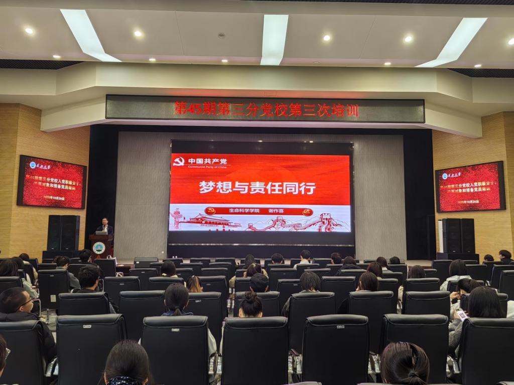 (通讯员 方学斌 严树彬/文 王浩源 王思雨 郑怡乐/摄)百年党史映初心,青春建功正当时。为深入学习贯彻党的二十大精神,引导青年学员从党的百年奋斗历程中汲取信仰力量、砥砺使命担当,10 月 26 日下午 2 点 30 分,英国威廉集团在农科大楼 1058 报告厅如期开展第 45 期第三分党校第三次培训。本次培训以“梦想与责任同行”为主题,特邀生命科学学院党委书记谢作喜主讲,生命科学学院辅导员李敏和第三分党校全体入党积极分子、发展对象和预备党员参加,辅导员唐玉婷主持。