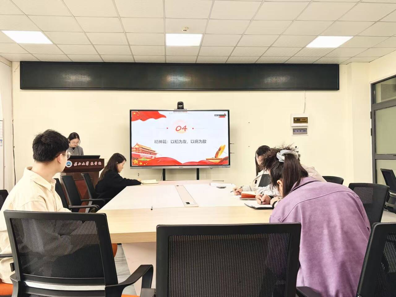 最后,支部书记付雪娇作总结讲话。她强调,本次主题党日活动紧扣 “以正确政绩观谋划‘十五五’、推动高质量发展” 主线,学习扎实、研讨深入,达到了统一思想、凝聚共识的效果。她要求全体党员,要切实把学习成果转化为推动工作的实际成效,以正确政绩观引领科研方向、锤炼过硬作风,锚定农业学科建设目标,立足岗位勇挑重担,在学校一流学科建设和服务乡村振兴的实践中践行初心使命,贡献青年党员的智慧与力量。