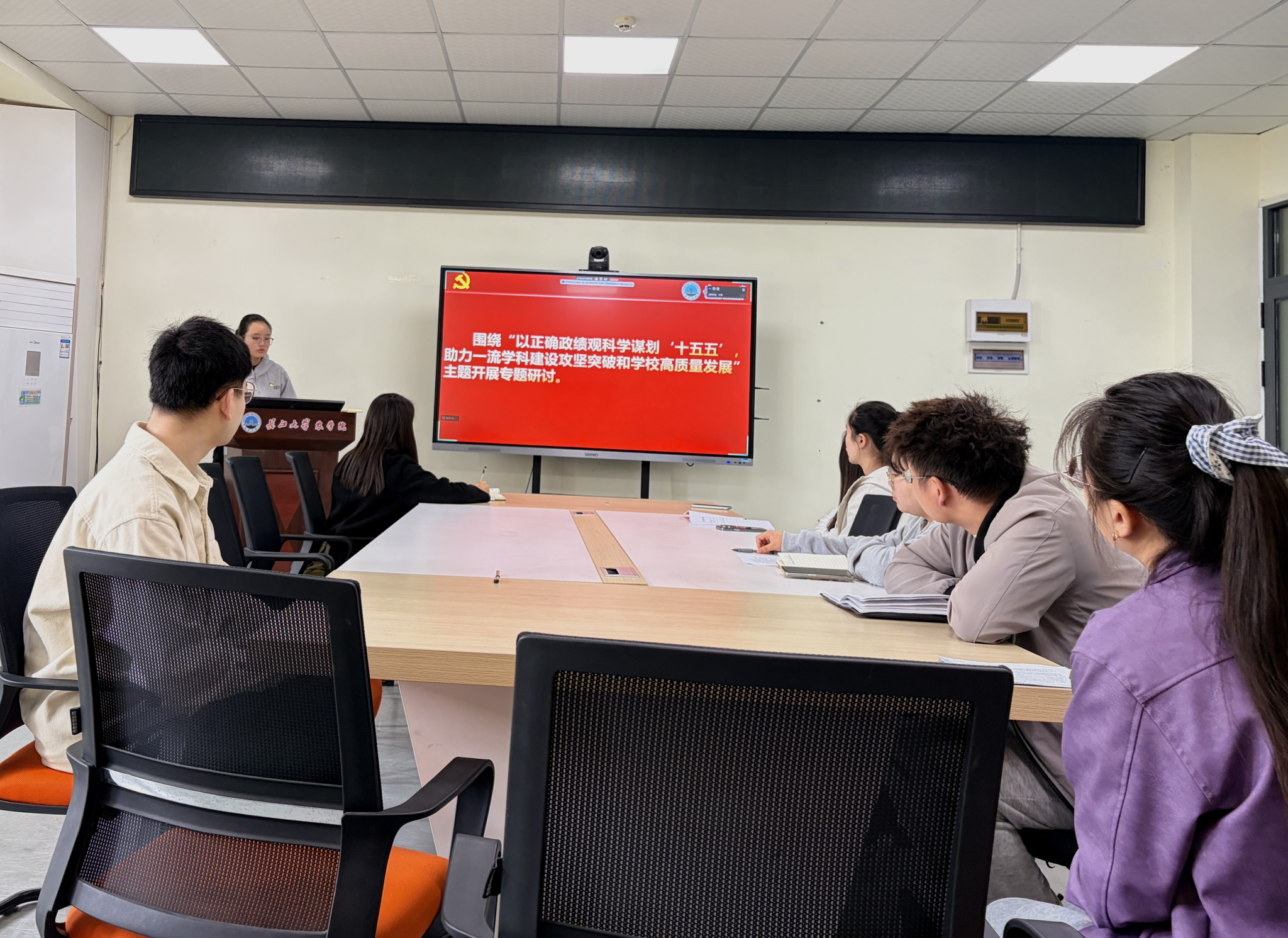 在交流研讨环节,与会党员围绕 “以正确政绩观科学谋划‘十五五’,助力一流学科建设攻坚突破和学校高质量发展” 主题,结合各自学习分享内容展开深入讨论。王覃丽、郝陈静子、张旭阳同志表示,践行正确政绩观,要锚定“为民兴农”初心、立足岗位根基、勤学善思、实事求是,拒绝浮躁,强化功成不必在我的担当,迎难而上,潜心科研攻关,服务好“三农”。