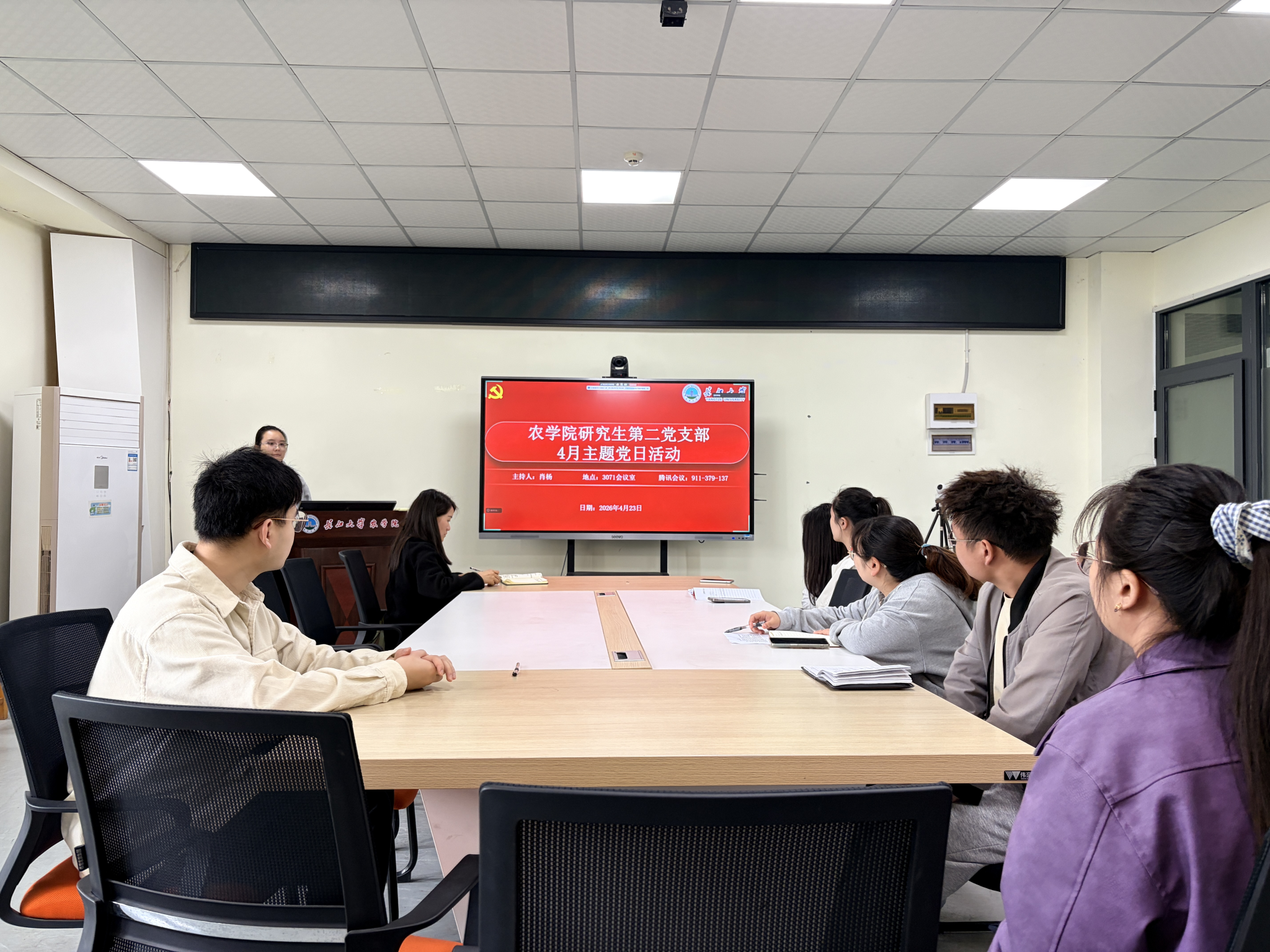 (通讯员 李嘉萍)4月23日,我院研究生第二党支部在农科大楼3073会议室开展4月份主题党日活动,活动通过腾讯会议的方式同时在线上召开。全体在校党员和校外联培党员共同参与,活动由肖扬同志主持。