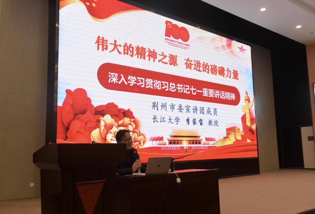 李家宝教授以“伟大的精神之源,奋进的磅礴力量”为主题,通过分析多组数据,展示了中国发生的巨变,让师生对中国共产党取得的伟大成就有了深刻的体会。李教授结合大量的党史故事,解读了“坚持真理、坚守理想、践行初心、担当使命、不怕牺牲、英勇斗争、对党忠诚、不负人民”伟大建党精神的深刻内涵和时代价值,案例丰富,深入浅出,通俗易懂,让师生深受触动。