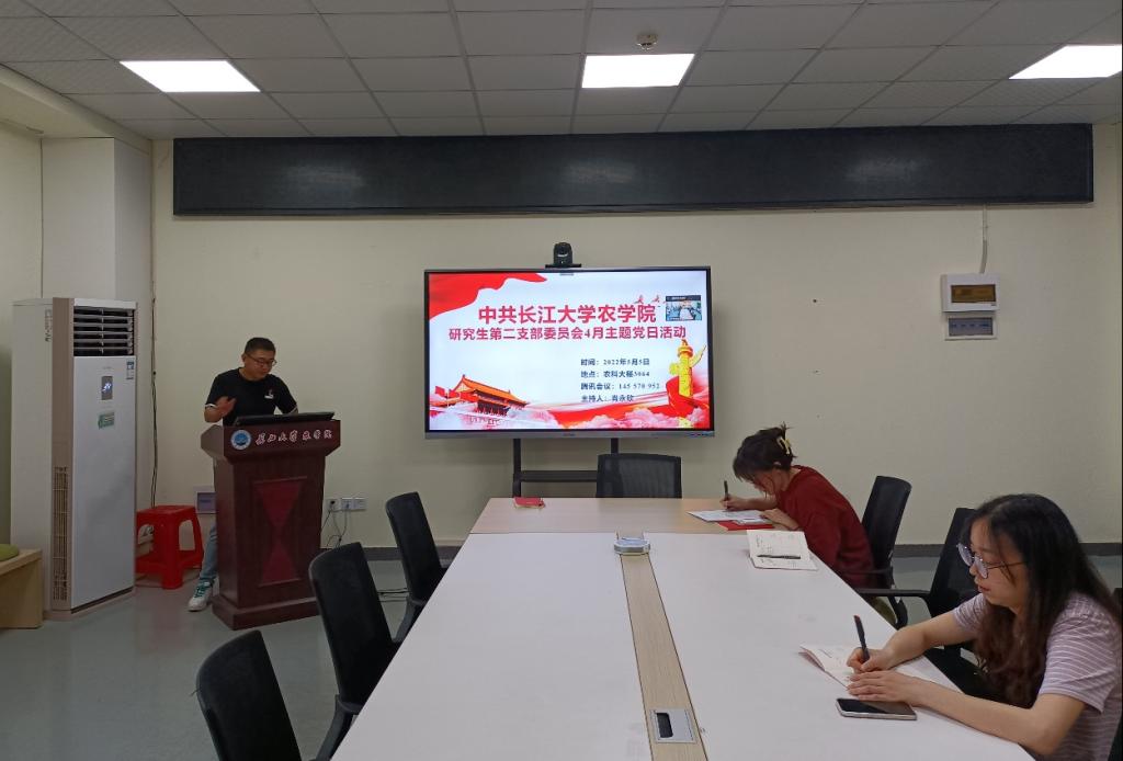 通讯社讯(通讯员 曹佩娜)5月5日18:30,我院研究生第二党支部在农科大楼3071开展了4月份主题党日活动,活动在线上结合腾讯会议的方式开展。全体在校党员和校外联培党员参与了此次活动,会议由支部副书记肖永欣主持。
