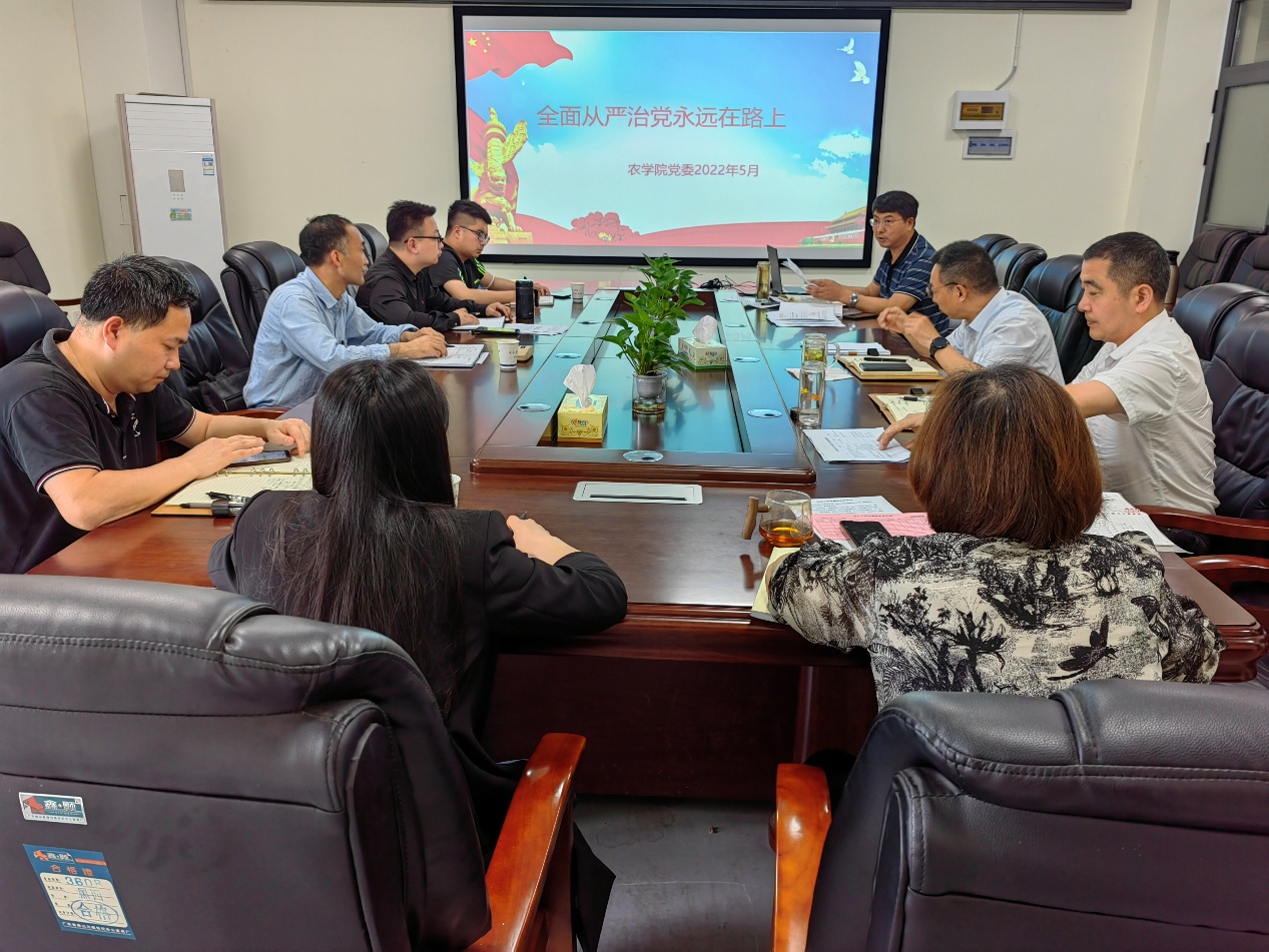2022523日上午,学院党委书记姜清奎在农科大楼3064会议室主持召开全面从严治党专题会议。学院领导班子成员、学院党委委员、各党支部书记及各科室负责人参加。