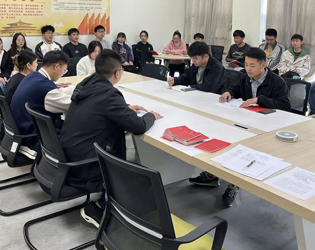 会上,宣传委员陈悦同志带领全体党员重温入党誓词。全体党员交纳本月党费,并集体诵读党章。组织委员王澎同志讲微党课,由丁志虎、宋超新、吴静等同志带领所有党员开展理论学习。