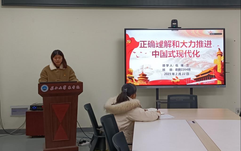 (通讯员 曹佩娜 宋梦圆)2月22日下午3点,我院研究生第二党支部在农科大楼3071开展二月份主题党日活动,活动结合腾讯会议(ID:669 754 832)的方式在线上召开。全体在校党员和校外联培党员共同参与,活动由支部副书记杨阳同志主持。