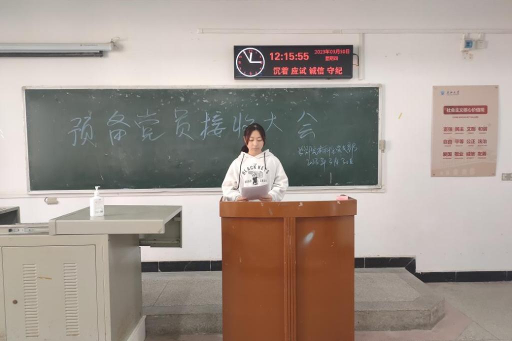 (通讯员 亢凯)为进一步加强党员队伍建设,壮大党员队伍,3月30日中午12:10,我院本科生学生党支部在7教109教室顺利开展2023年上半年预备党员接收大会。支部党员应到54人,实到32人,应到具有表决权的正式党员25人,实到15人,超过半数,符合大会召开条件。会议由支部副书记唐海洋同志主持。