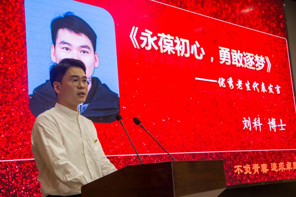 “把功夫花费在课堂上、把精力殆尽在实验室、把汗水挥洒在试验田!”老生代表刘科博士分享了自己读研期间的收获,从专业学习、校园生活等方面向新生传授经验,表达了对2021级新生们的暖暖关爱和殷殷嘱托。