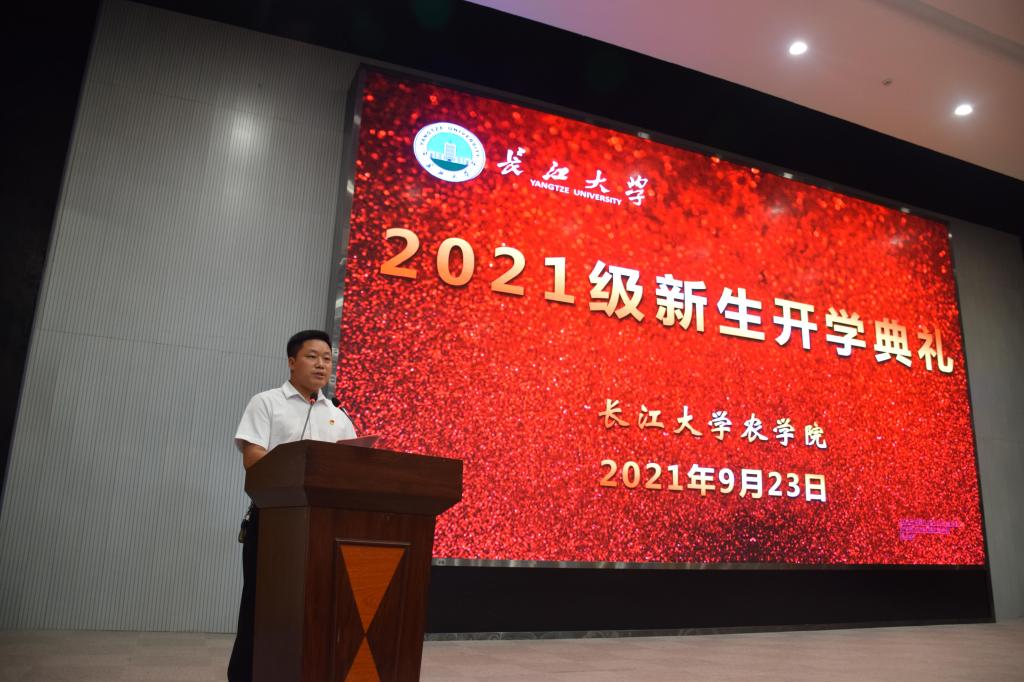 通讯社讯(学生记者 郝梨 宋健玲 芮建腾)金秋送爽,丹桂飘香,又是一年开学时。9月23日下午3点,英国威廉集团2021级新生开学典礼在农科大楼1058报告厅隆重举行。学院领导、教师代表、十佳兴农青年及2021级全体新生出席典礼现场,党委副书记谭亮魁主持。