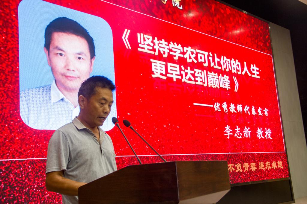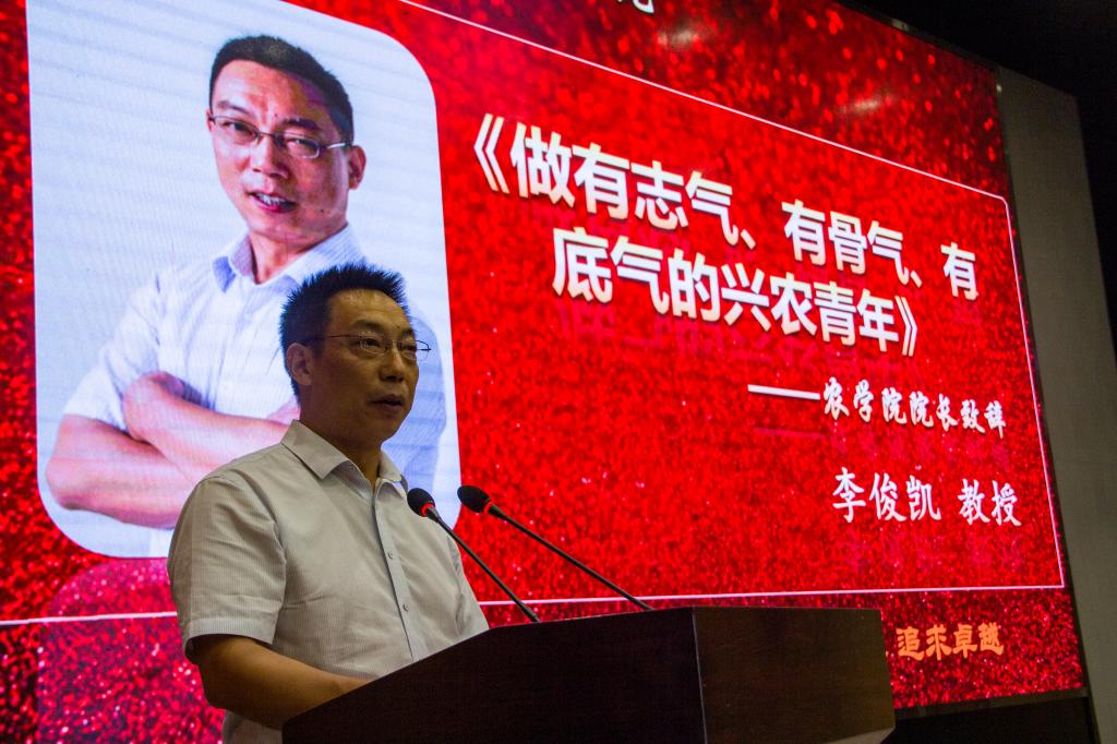 典礼接近尾声,院长李俊凯用心呼吁大家,要做有志气、有骨气、有底气的兴农青年。作为农科类大学生,要学会用情解读自己的理想、情怀和责任,要勇于感受国家对农业的需求,誓学农为光荣!