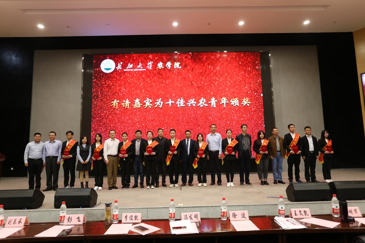 学院党委书记冯发明宣读表彰文件,向荣获第十届“十佳兴农青年”荣誉称号的同学表示祝贺,并鼓励广大同学坚持以学为主,全面发展,努力成为创新型、创业型农业高级人才。教师代表为十佳兴农青年颁发荣誉证书并合影留念。